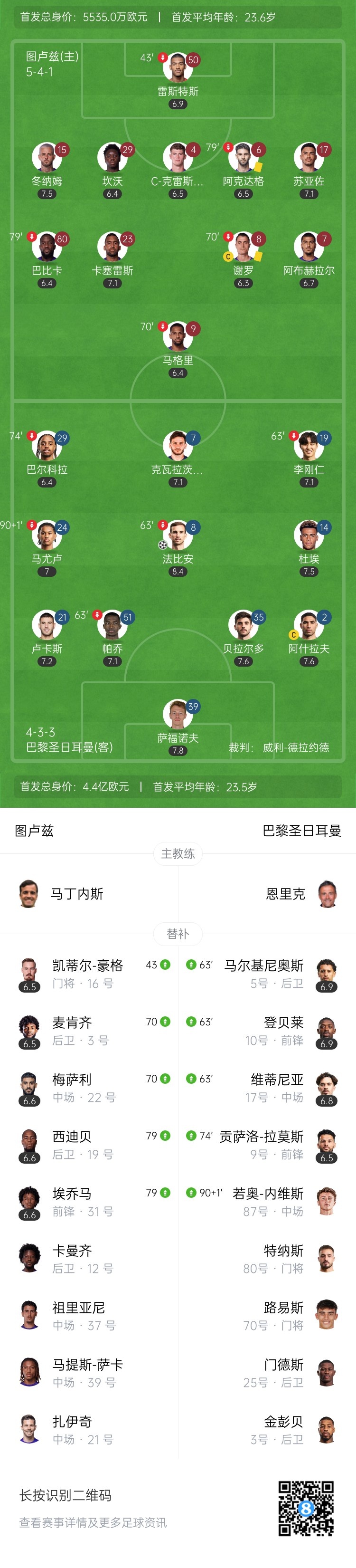 【双方首发及换人信息】