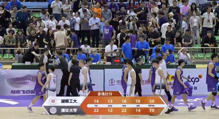 末节开局清华大学凭借刘庆闻的连续拿分送出7-2的攻势继续扩大优势,而湖南工大依旧是吴子煜连续拿分帮助球队在最多落后16分的情况下再次追了上来。有余比赛是两回合比赛,因此两队都想要尝试继续扩大或缩小分差为第二回合做准备,而林俊浩的进球再度迫近个位数让湖南工大看到希望;不过清华大学还是杨曦皓的关键拿分及时稳住局面。最终,清华大学客场首回合70-59击败湖南工业大学拔得头筹。