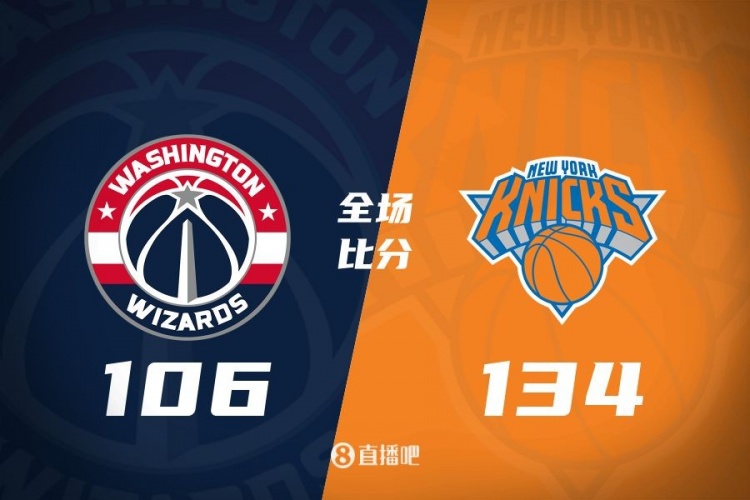 比赛开始后萨尔和库兹马联手帮助奇才抢占先机,但随后他们进攻断电,哈特突然爆发帮助尼克斯打出一波16-2的攻势完成反超,此后奇才进攻命中率依旧不高,防守上也表现差劲,尼克斯外线全面开花单节轰下40分建立起两位数优势。第二节回来唐斯也开启进攻模式连连砍分,虽然吉斯珀特连续回应三分,但尼克斯整体攻势凶猛继续扩大优势。虽然在第二节尾声奇才掀起反扑稍稍缩小分差,但下半场尼克斯在布伦森和唐斯的带领下依旧攻势连连,比赛早早失去悬念,第四节打了一半尼克斯也撤下主力,最终尼克斯134-106大胜奇才取得3连胜,奇才遭遇9连败。
