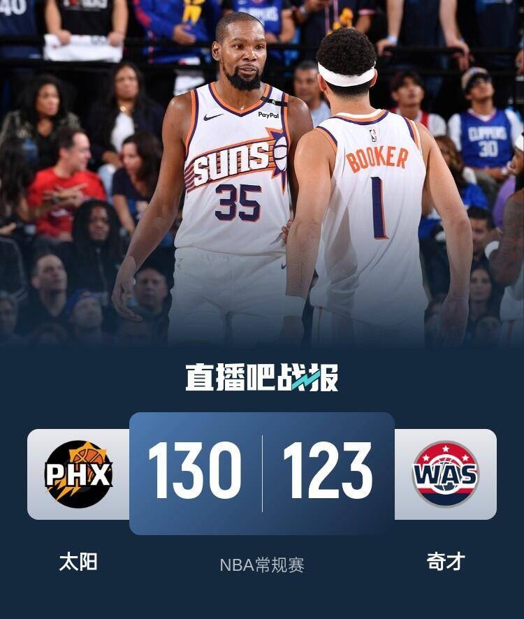 🏀布克37+5 杜兰特23+6 奇才乔治生涯新高24分 太阳送奇才8连败