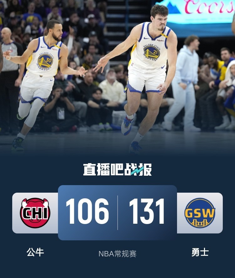 🏀库里21+7 波斯特20分 拉文24分 勇士7人上双大胜公牛