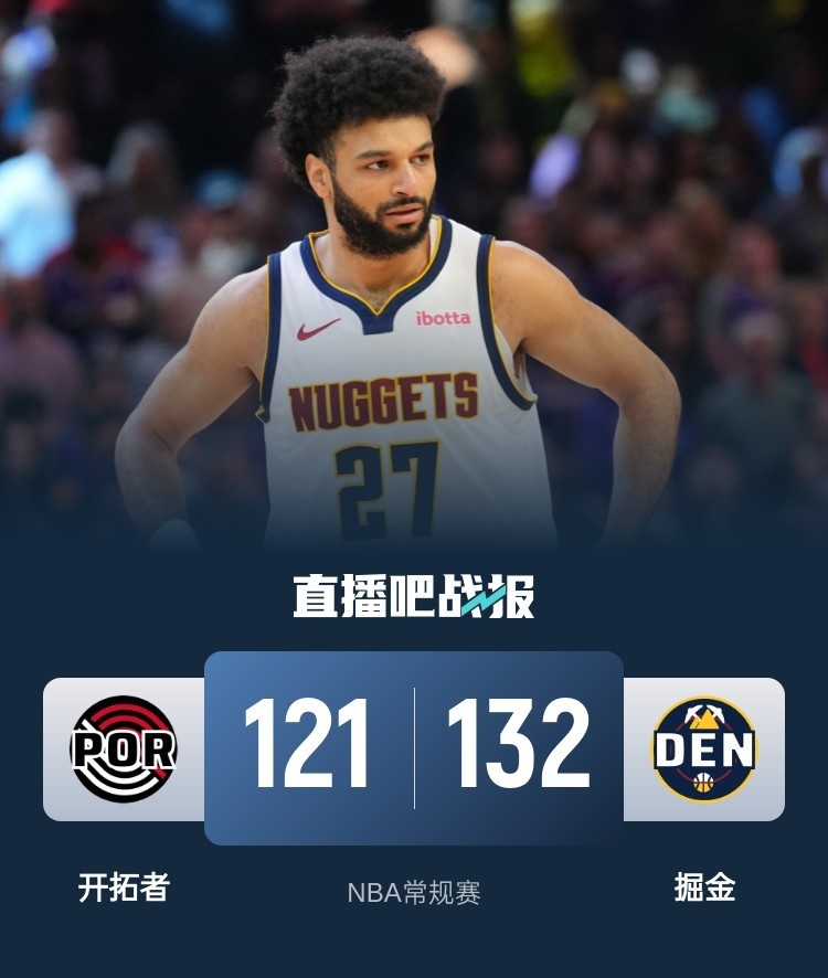 🏀穆雷生涯新高55分 约基奇26+15+10 掘金力克开拓者取8连胜
