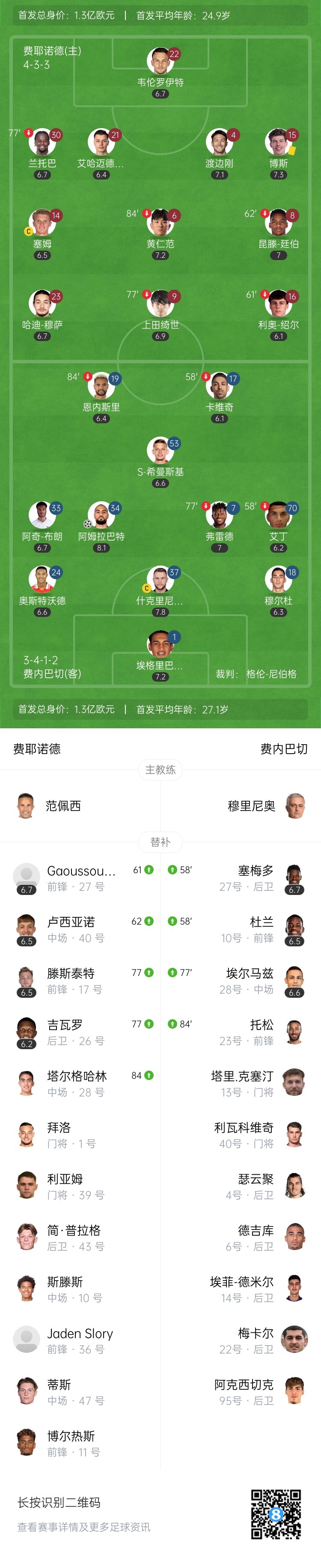 【双方首发及换人信息】