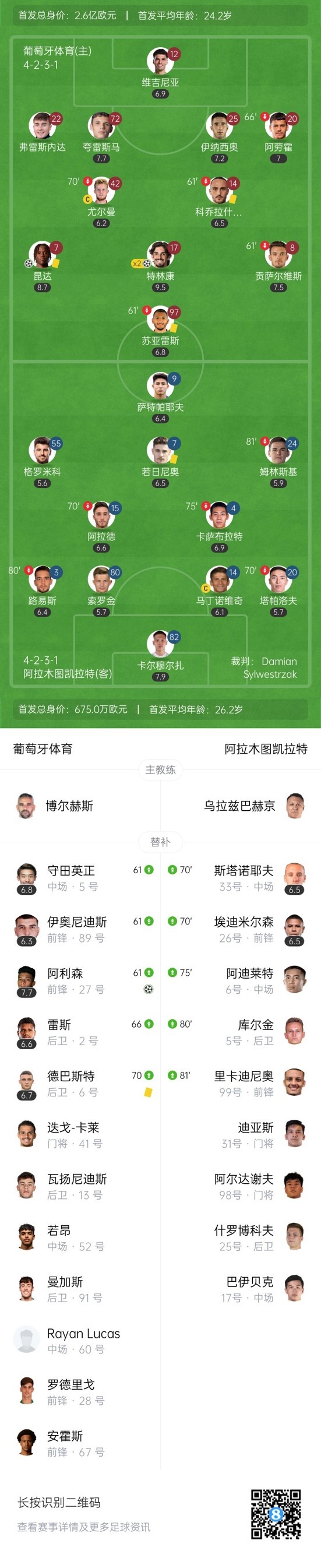 下半场补时3分钟,葡萄牙体育4-1阿拉木图凯拉特。