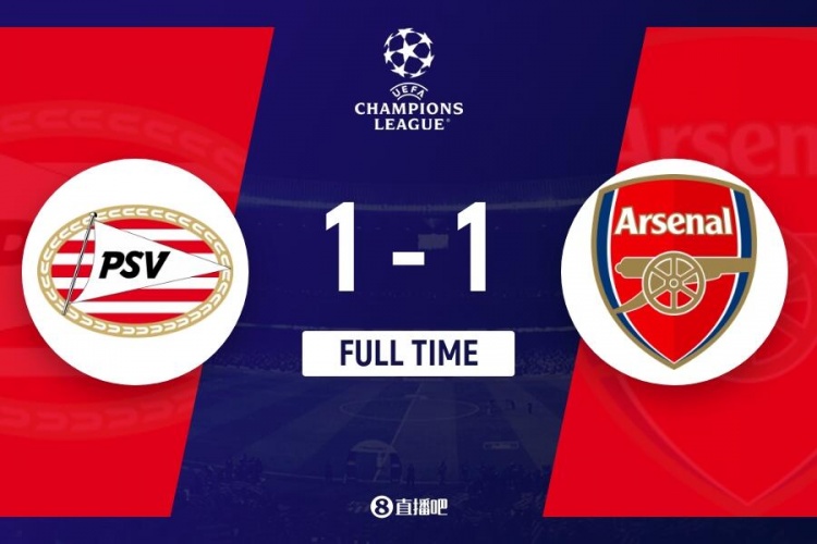 欧冠-阿森纳1-1埃因霍温头名收官 恩凯提亚破门埃尔内尼伤退+中柱