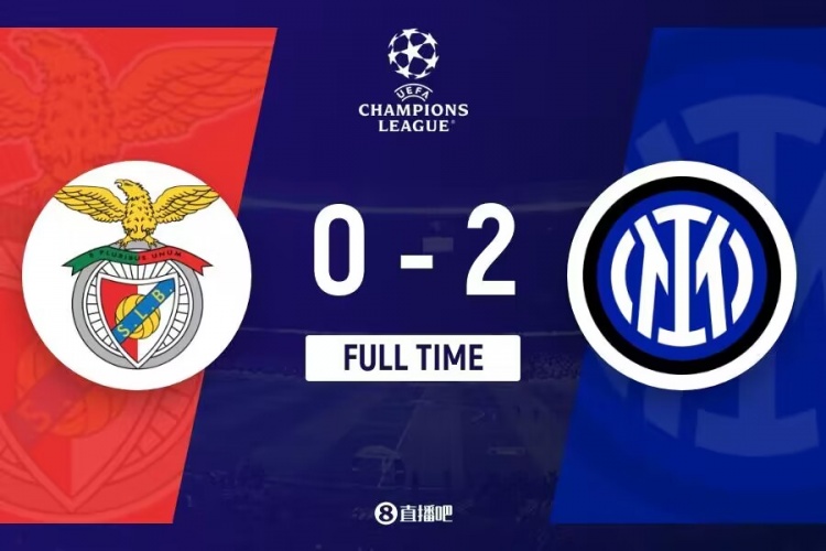 全场比赛结束,国米2-0本菲卡。