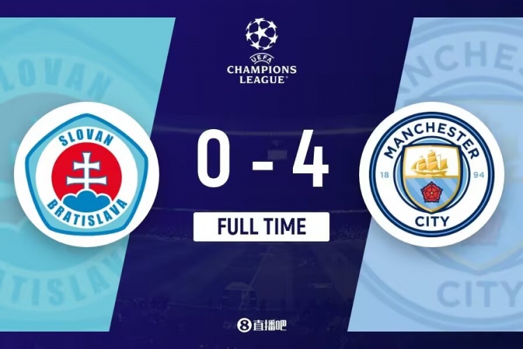 下半场补时2分钟。最终全场比赛结束,曼城4-0布拉迪斯拉发。