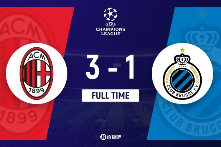 欧冠-米兰3-1十人布鲁日取首胜 赖因德斯双响普利西奇角球破门