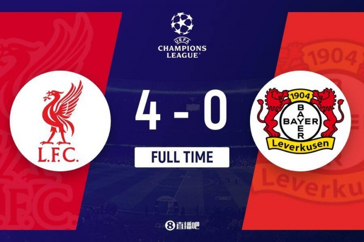 全场比赛就结束,利物浦4-0勒沃库森。