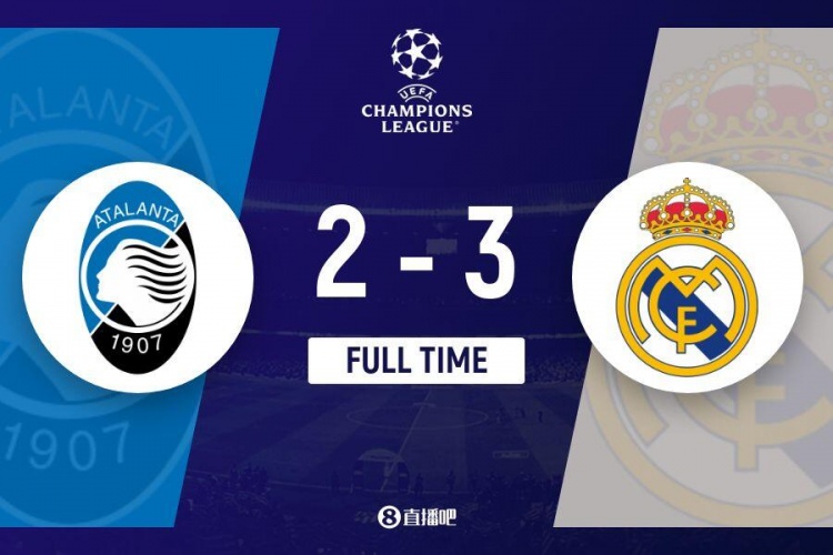 皇马3-2亚特兰大止欧冠2连败 姆总欧冠50球+伤退维尼修斯贝林破门