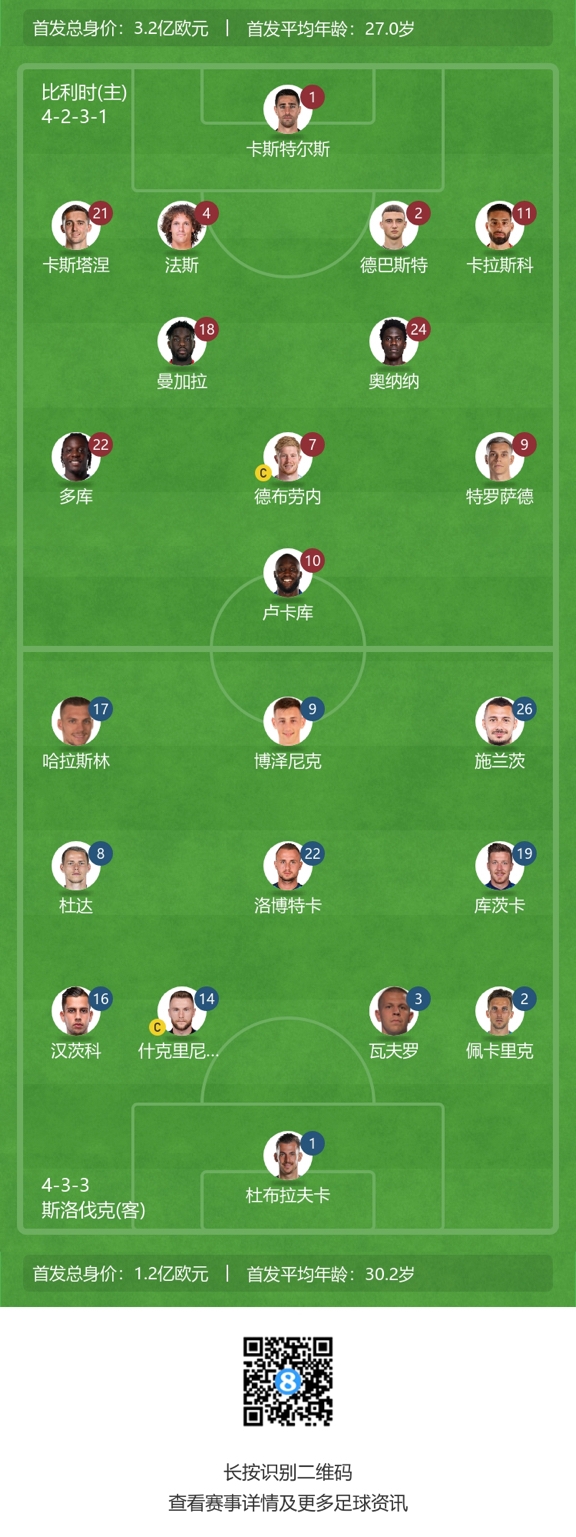 第7分钟,多库后场传球送礼!禁区内库茨卡得球打门被扑!门前施兰茨小角度补射得手!斯洛伐克1-0领先比利时↓