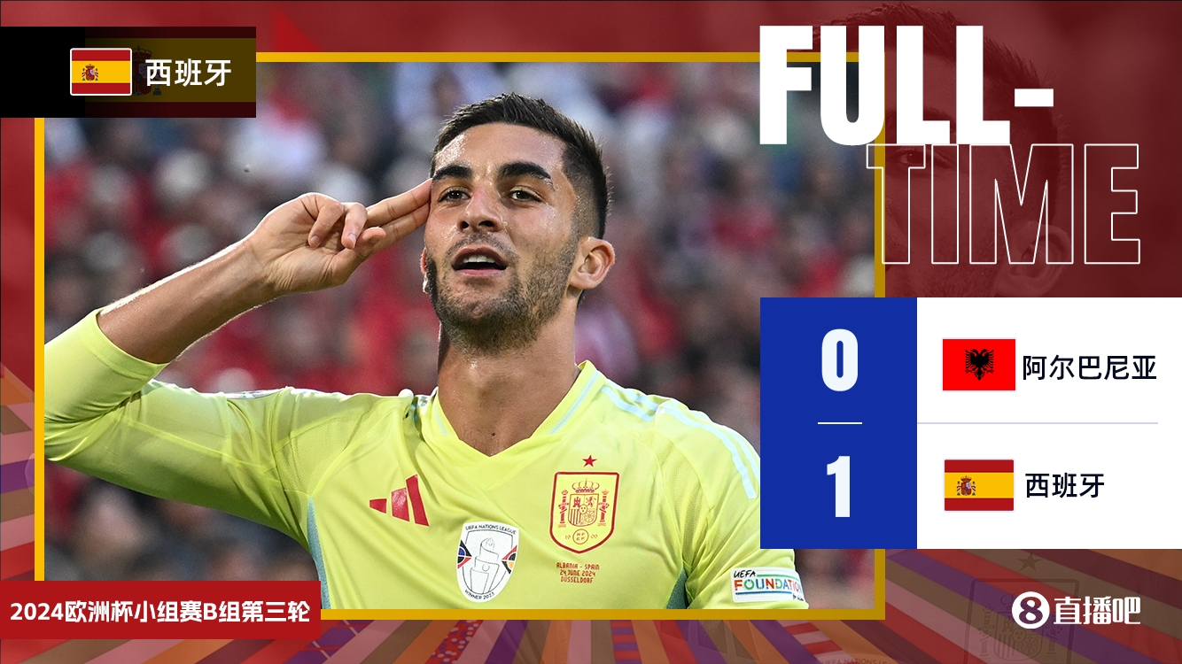 全场比赛结束,最终西班牙1-0阿尔巴尼亚。