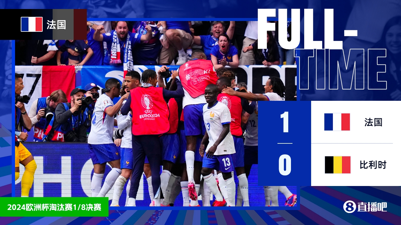 比赛结束,法国淘汰比利时晋级欧洲杯八强!↓