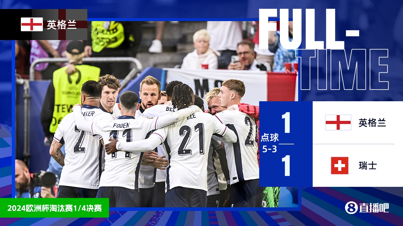 全场比赛结束,英格兰6-4瑞士。