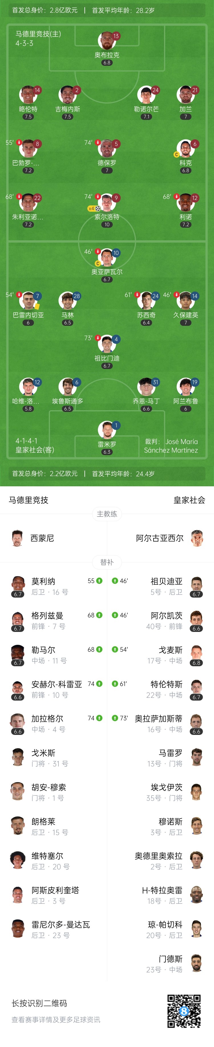索尔洛特4分钟3球+半场大四喜 马竞4-0皇家社会3轮不败稳居第三