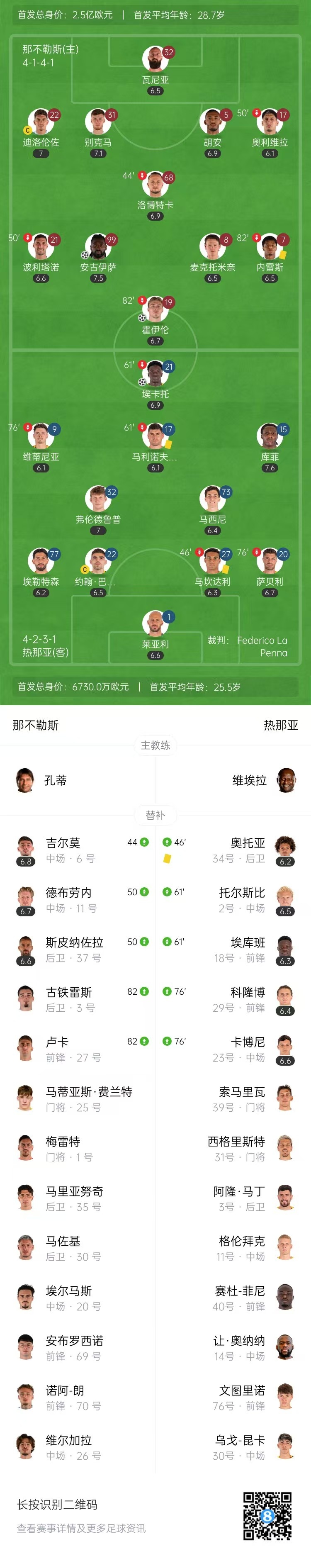 第75分钟,安古伊萨跟进劲射被扑,霍伊伦小禁区前沿补射完成反超,那不勒斯2-1热那亚。↓