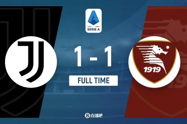 下半场伤停补时6分钟,全场比赛结束,最终尤文图斯1-1萨勒尼塔纳。