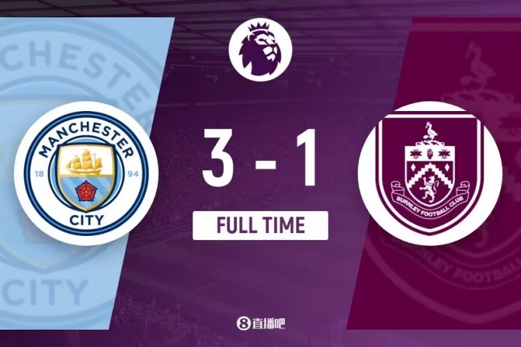 下半场补时5分钟。最终全场比赛结束,曼城3-1伯恩利。
