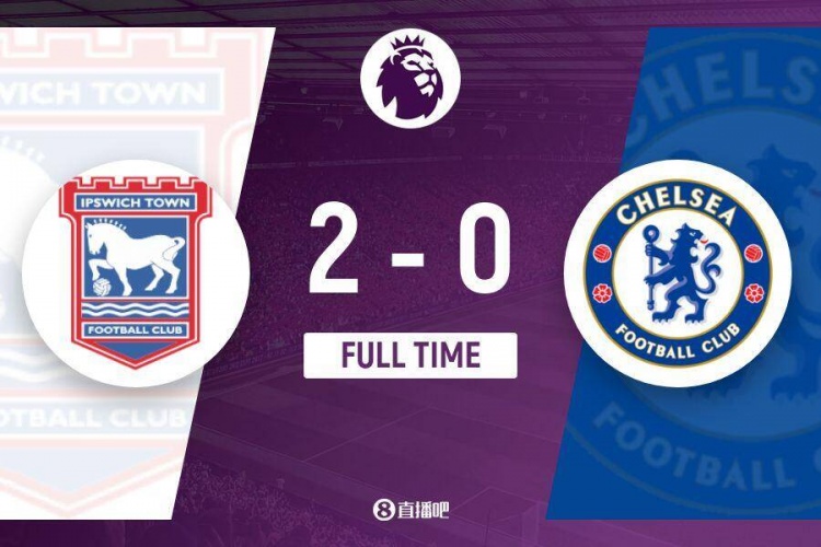 全场比赛结束,切尔西0-2伊普斯维奇。