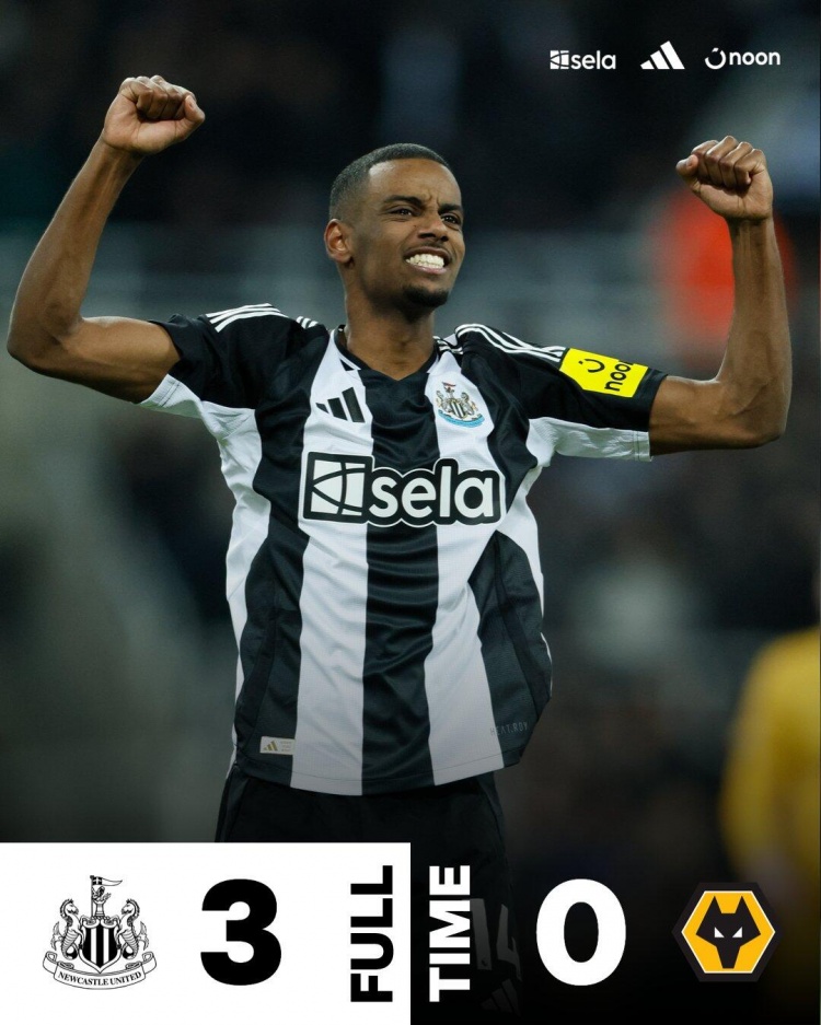 英超-纽卡斯尔3-0狼队 伊萨克两射一传戈登建功
