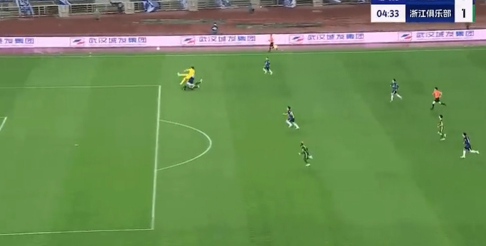 下半场补时8分钟。最终全场比赛结束,武汉三镇0-4浙江队。