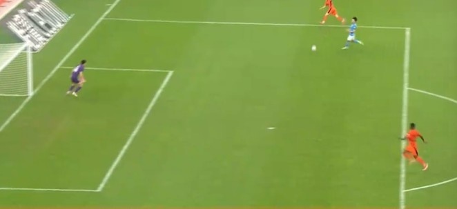 第25分钟,列昂索前场接直塞球过掉马镇后推射被门线解围。↓