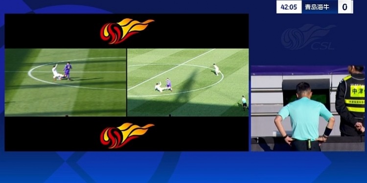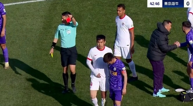 经VAR回放后改判直接红牌将金洋洋罚下。↓