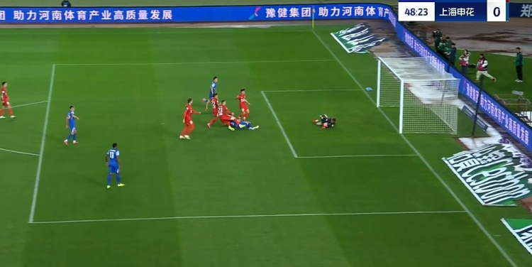 第85分钟,河南前场定位球机会,申花禁区内一片乱战,河南连续的打门都被封堵↓