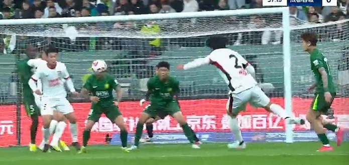 第77分钟,成都蓉城扳平比分!卡隆禁区右路凌空抽射踢呲到门前费利佩巧射破门,国安1-1蓉城。↓