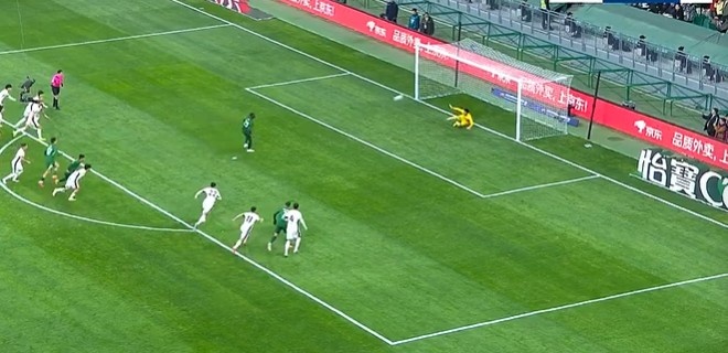 下半场补时7分钟,北京国安1-1成都蓉城。