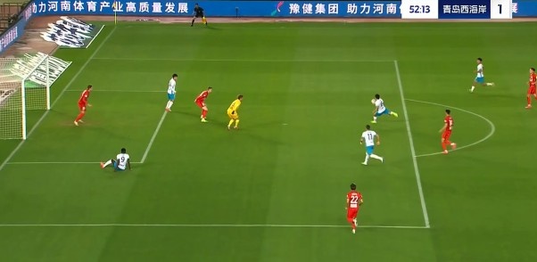 第63分钟,河南队再度领先,纳萨里奥策动攻势,他随后在右路送出传中,费利佩-卡多索头球摆渡,阿奇姆彭头球接力破门,河南队2-1领先青岛西海岸。↓