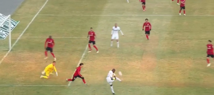第62分钟,廖承坚突施冷箭,苏祖将球挡出底线。↓