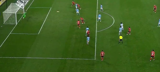 第12分钟,大连右路角球开到禁区后点廖锦涛头球摆渡门前马莱莱头球顶偏了。↓
