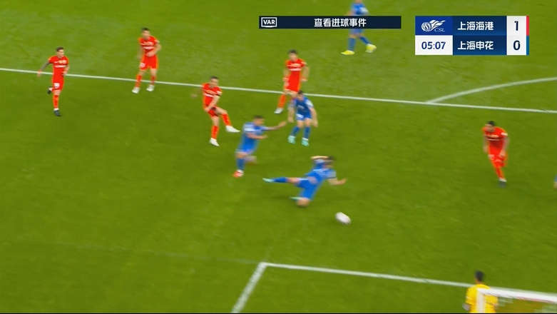 第82分钟,陈晋一左路传中,于汉超禁区中路前插头球破门,马宁经VAR确认后进球有效,上海申花1-1上海海港。↓