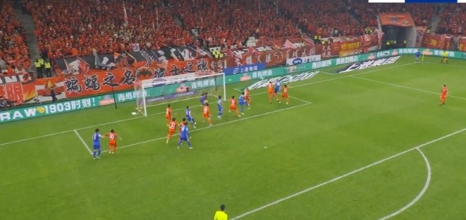 第20分钟,申花还是右侧角球机会,吴曦甩头攻门高出横梁。↓