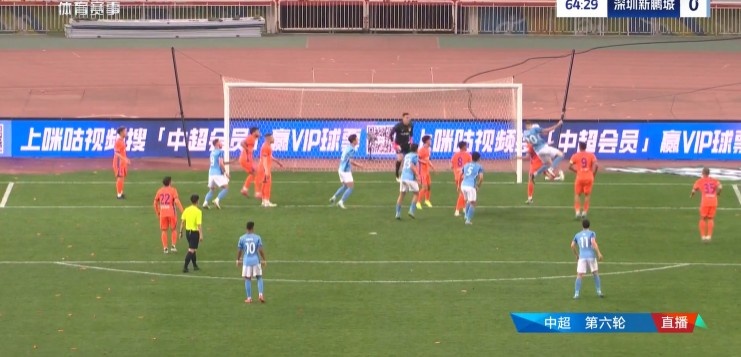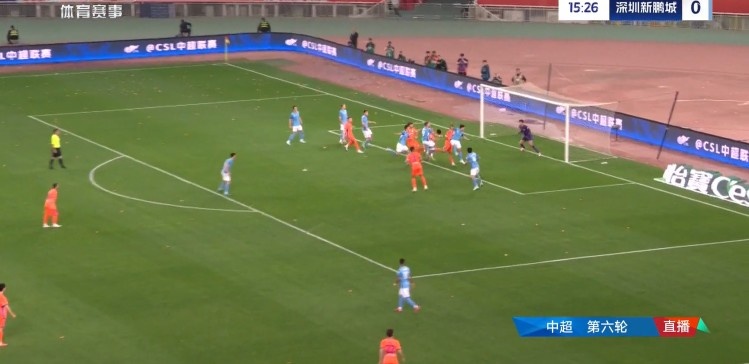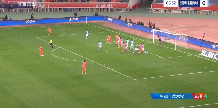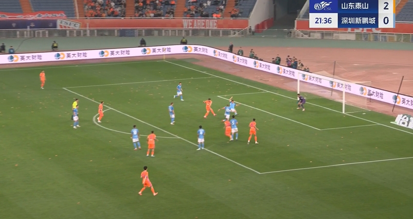第6分钟,刘洋左路禁区边沿突破造成对方犯规,李源一主罚直接打向球门方向,双方球员均未碰到,皮球飞入球网,泰山队2-0领先新鹏城。↓