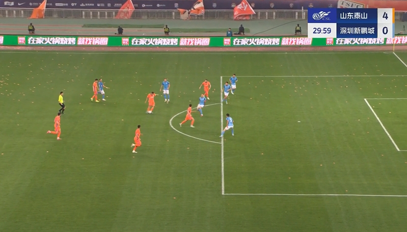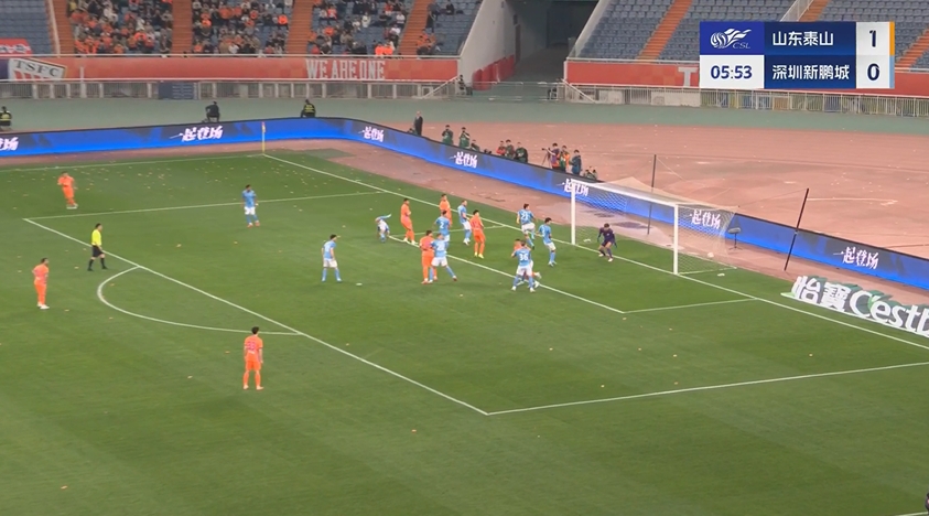 半场战罢,泰山队暂4-0新鹏城。