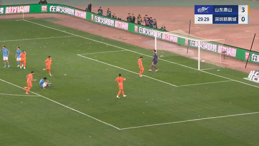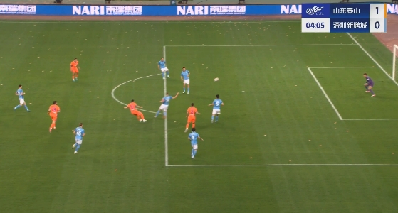 第30分钟,泰山队将优势扩大到4球,卡扎伊什维利抢断后脚底板向后拉球送出助攻,克雷桑远射破门,泰山队4-0领先新鹏城。↓