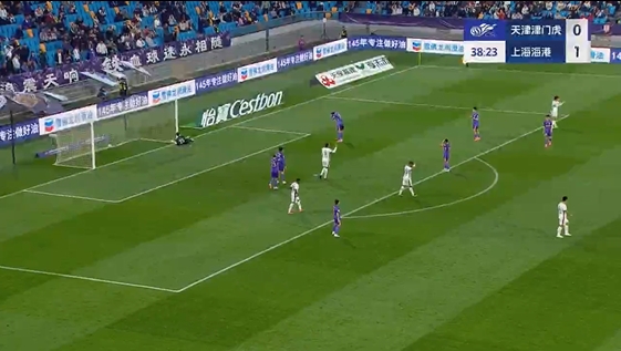 第39分钟,明天右路传中,谢维军解围时不慎用大腿将球打入本方球门,海港2-0领先津门虎。↓