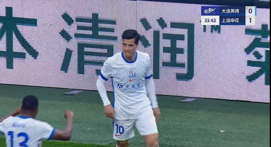 申花客场2球领先!18岁刘诚宇连续3场破门,米内罗助攻!第38分钟,吴曦中场长传,隋维杰出击失误,马莱莱将球顶到门前,刘诚宇跟进推射空门入网,米内罗疑似有些不满,大连英博0-2上海申花!↓