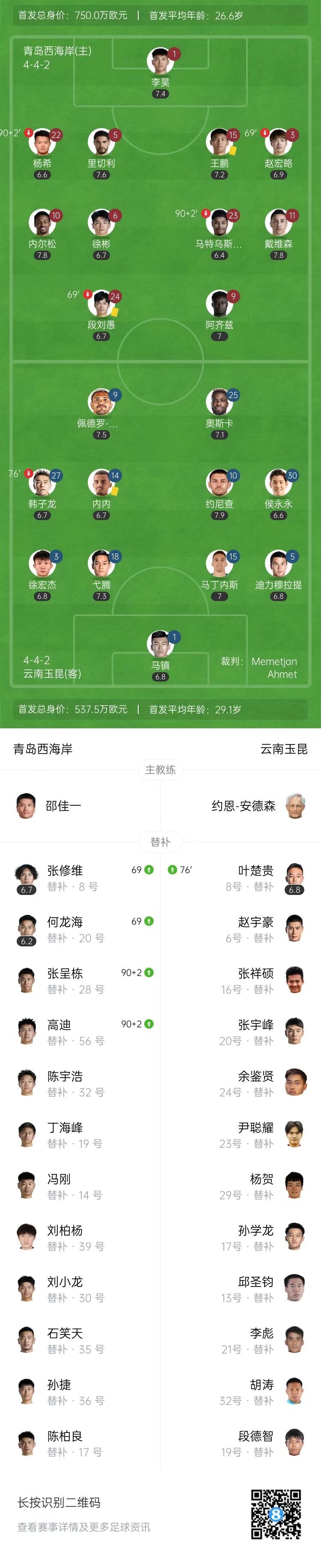 【双方比赛阵容】