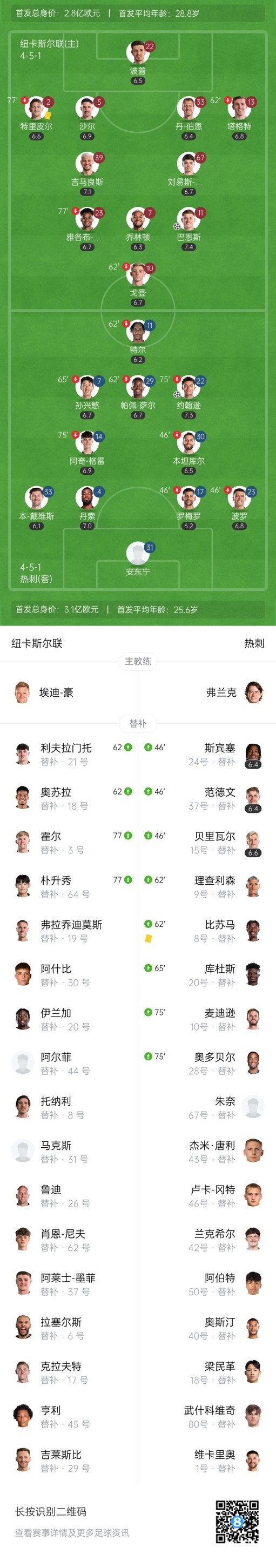 双方首发以及换人信息: