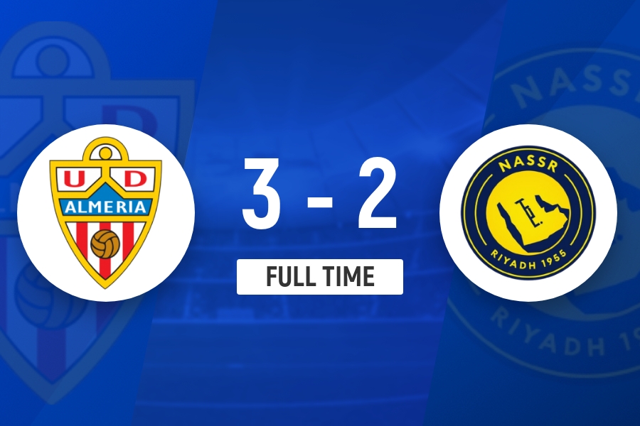全场比赛结束,利雅得胜利2-3不敌阿尔梅里亚。