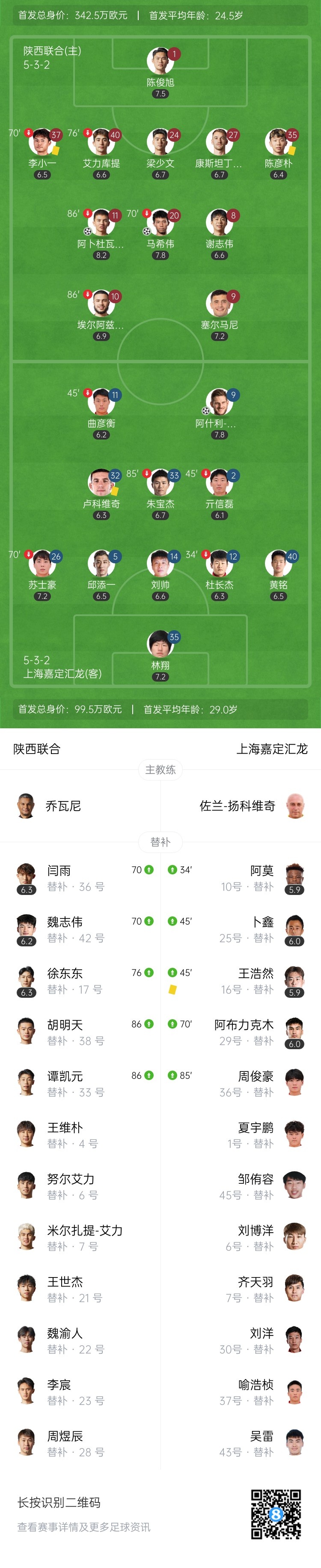【双方首发及换人信息】