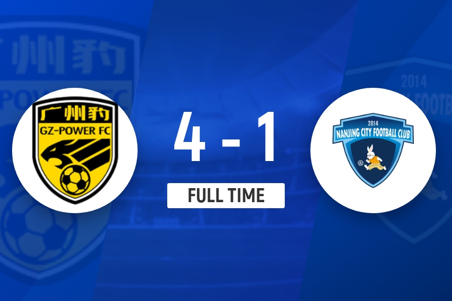 全场比赛结束,广东广州豹主场4-1战胜南京城市。