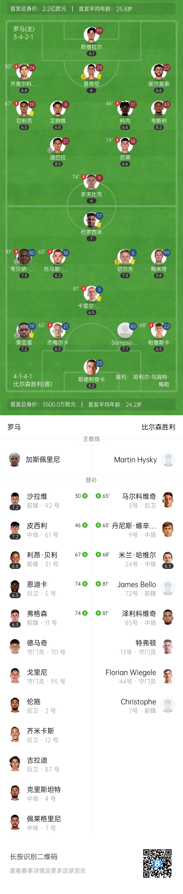 第53分钟,罗马右侧传中,替补登场的皮西利头球攻门打在防守队员手臂上,VAR介入主裁亲自回看后判罚点球,迪巴拉主罚命中,罗马1-2扳平一球↓