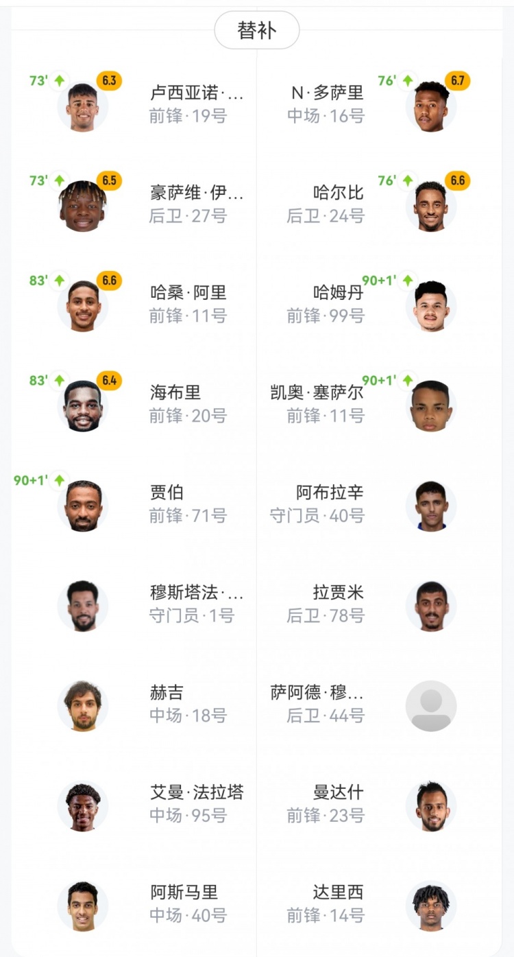 【双方首发及换人信息】