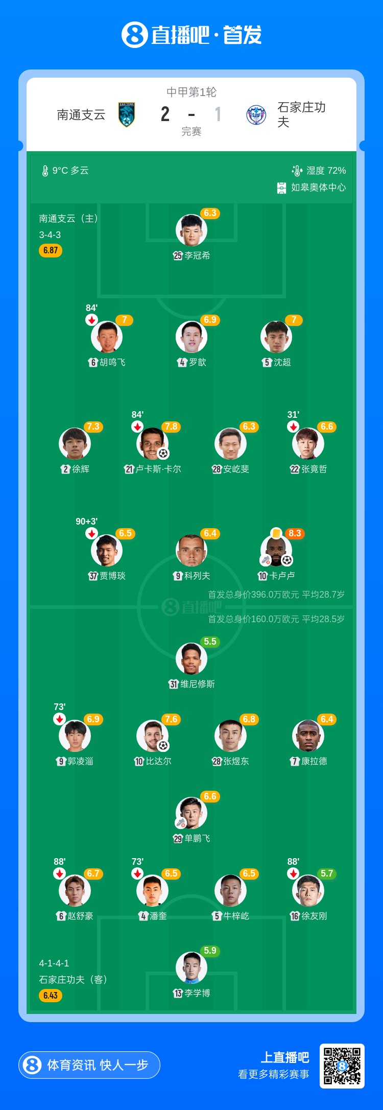 中甲首轮:南通2-1石家庄取开门红 卡卢卢、卢卡斯·卡尔2分钟2球