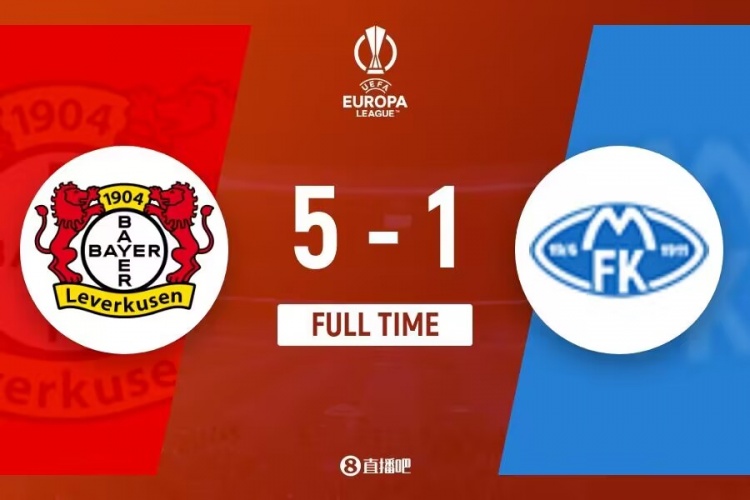 下半场补时3分钟,勒沃库森5-1莫尔德。