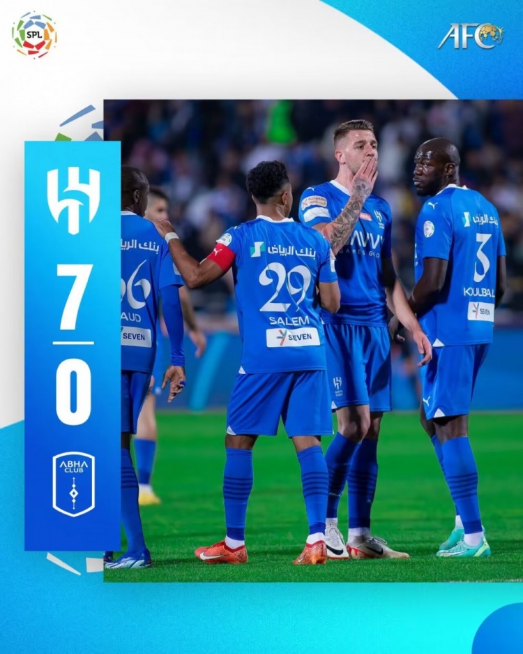 沙特联-利雅得新月7-0艾卜哈联赛11连胜 米林戴帽米神破门